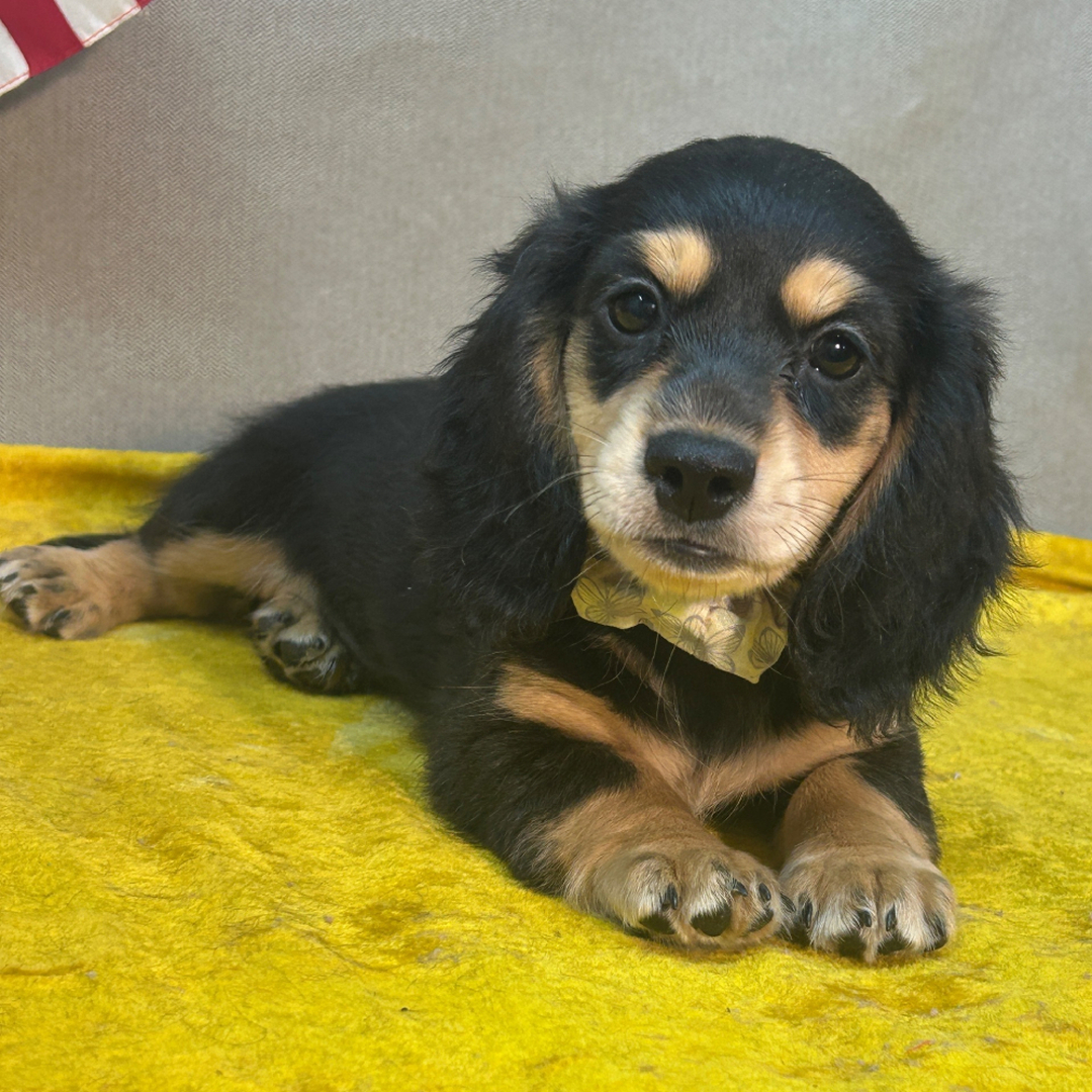 Hi, I’m Autumn! I’m an 11-week-old female Dachshund with a beautiful black & tan coat, born on May 12, which makes me a Taurus pup. I am ready now to plan my trip to my forever family. I’m AKC registered. My heart is big, my paws are tiny, and I’m ready to love you endlessly.