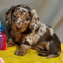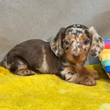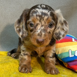 Hi, I’m Baby Cake! I’m a 6-week-old female Dachshund with a beautiful silver dapple coat, born on June 14, which makes me a Gemini sign. I’ll be ready to go home to my forever family after August 10, once I’m grown enough to leave my litter. I’m AKC registered. My love for you will be as boundless as my puppy energy.