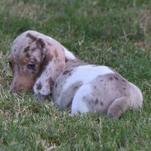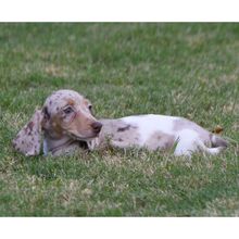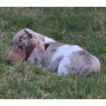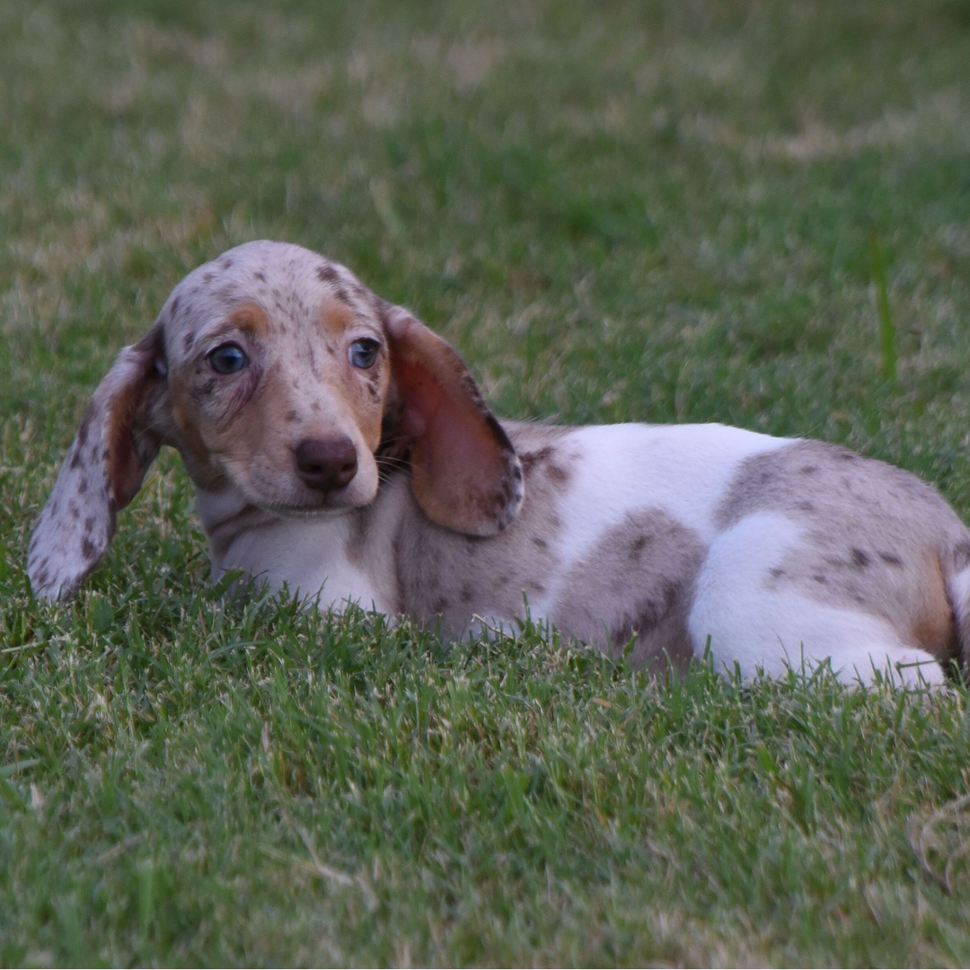 Hi, I’m Cameo! I’m a 10-week-old female Dachshund with a beautiful chocolate dapple coat, born on May 19, which makes me a Taurus pup. I am ready now to plan my trip to my forever family. I’m ACA registered. I’m looking forward to filling your days with joy and my playful antics.