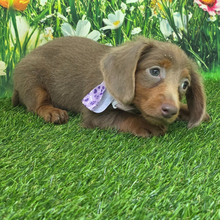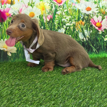 Hi, I’m Susie! I’m an 8-week-old female Dachshund with a beautiful fawn (isabella) & tan coat, born on June 2, which makes me a Gemini sign. I’ll be ready to go home to my forever family after July 28, once I’m grown enough to leave my litter. I’m APRI registered. I’m a cuddle expert and a professional tail-wagger.